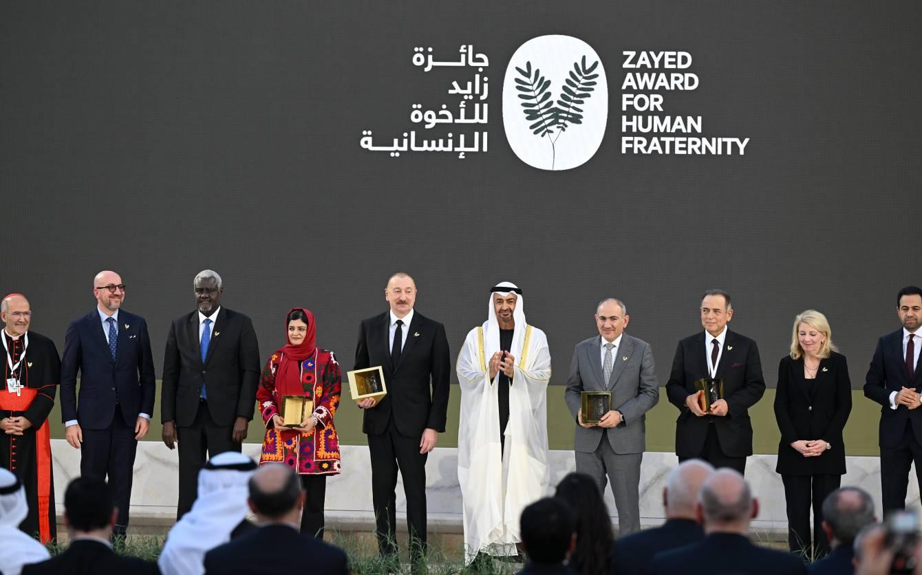 Daha sonra Birləşmiş Ərəb Əmirliklərinin Prezidenti Şeyx Məhəmməd bin Zayed Al Nəhyan “Zayed İnsan Qardaşlığı Mükafatı”nı laureatlara təqdim etdi.