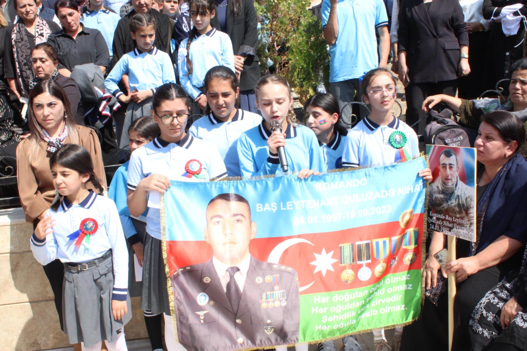 Çıxış edənlər şəhidimizin vətən uğrunda göstərdiyi şücaət və qəhrəmanlıq nümunələrindən bəhs edərək Nihat Quluzadənin keçdiyi şərəfli ömür yolundan danışıb, onun xatirəsinin xalqın qəlbində əbədi yaşayacağını bildiriblər. Tədbirdə, həmçinin gənc nəslə vətənpərvərlik ruhunun aşılanması, şəhidlərimizin əziz xatirəsinin daim hörmətlə yad edilməsi və onların qəhrəmanlıq nümunələrinin gələcək nəsillərə çatdırılmasının vacibliyi vurğulanıb. Tədbirin sonunda orta məktəb şagirdləri tərəfindən şəhidlərin xatirəsinə həsr olunmuş vətənpərvərlik mövzusunda şeirlər səsləndirilib.
